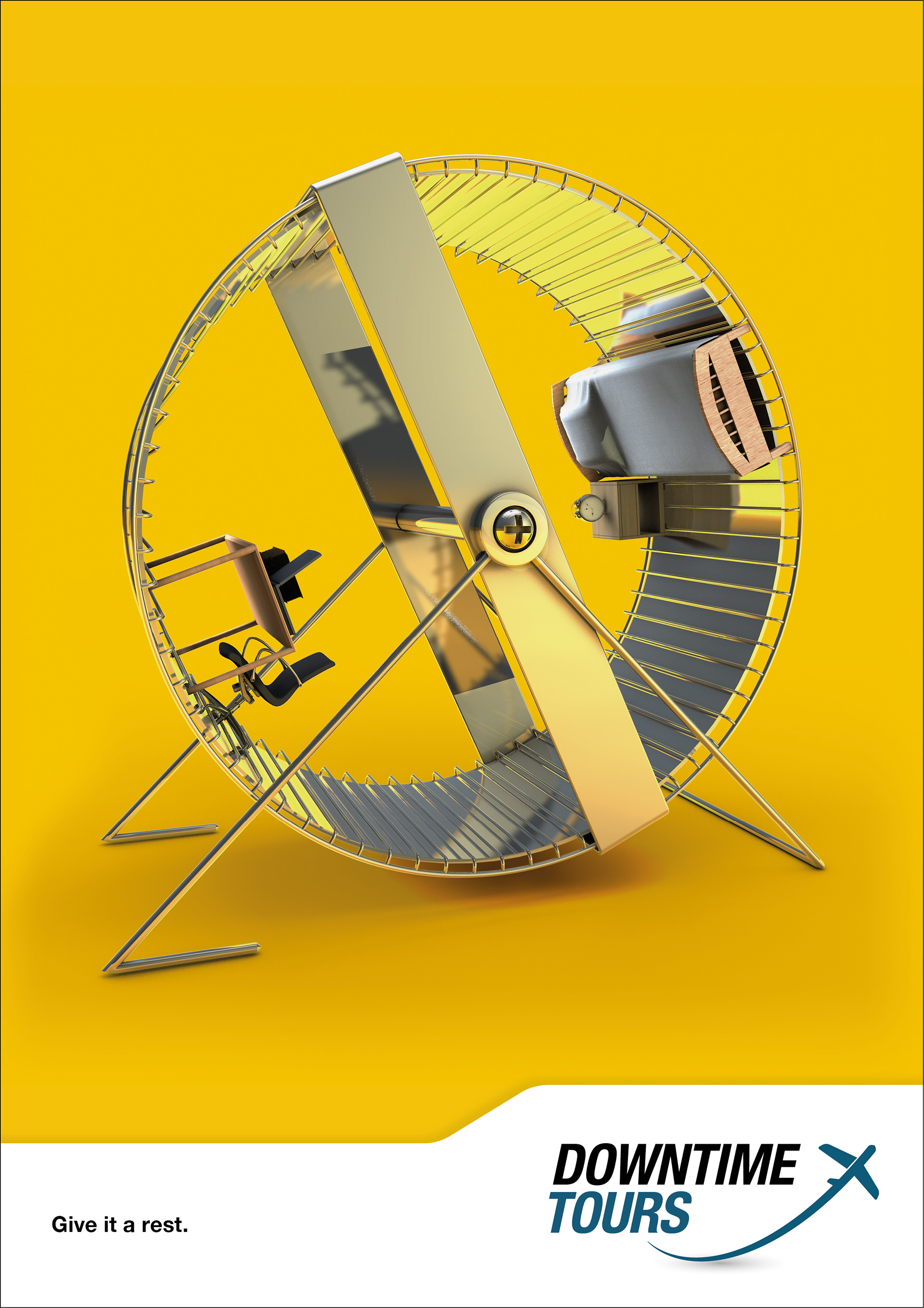 Mit diesem Werbesujet für die Fluggesellschaft «Donwtime Tours» werden Ferien in Form einer Pause vom Alltag beworben.